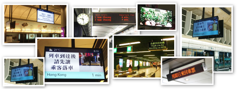 The distributed computer system integrating route information is used for disseminating timely train information for passengers. Almost 1,000 PIDS are deployed at the entrances, platforms and concourses in Lantau-Airport Railway (Tung Chung Line + Airport Express), West Rail Line, South Island Line (East) and Light Rail in Hong Kong whereas hundreds of PIDS were installed in Singapore North East Line.
