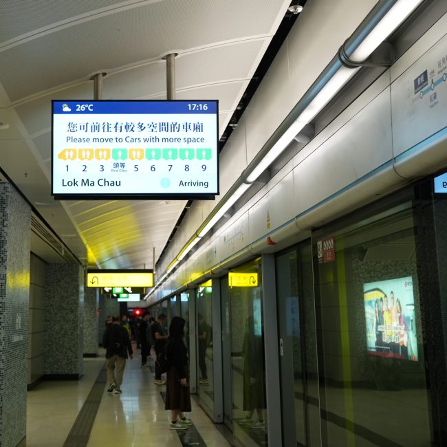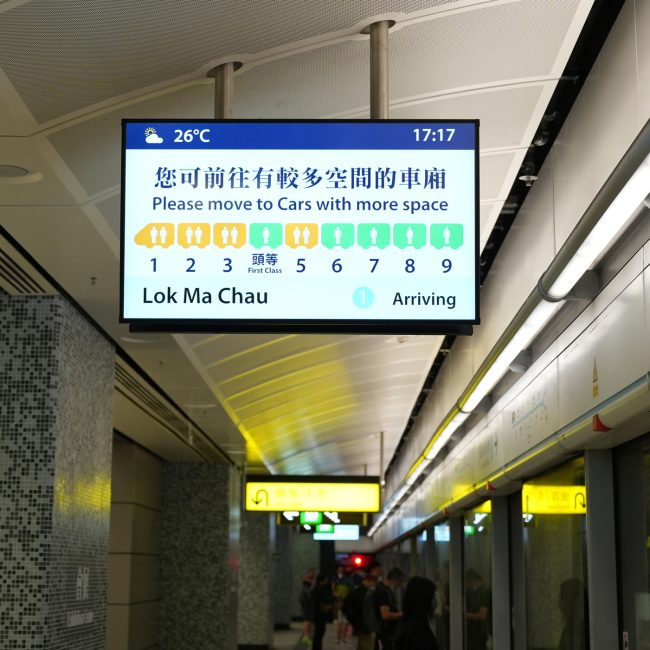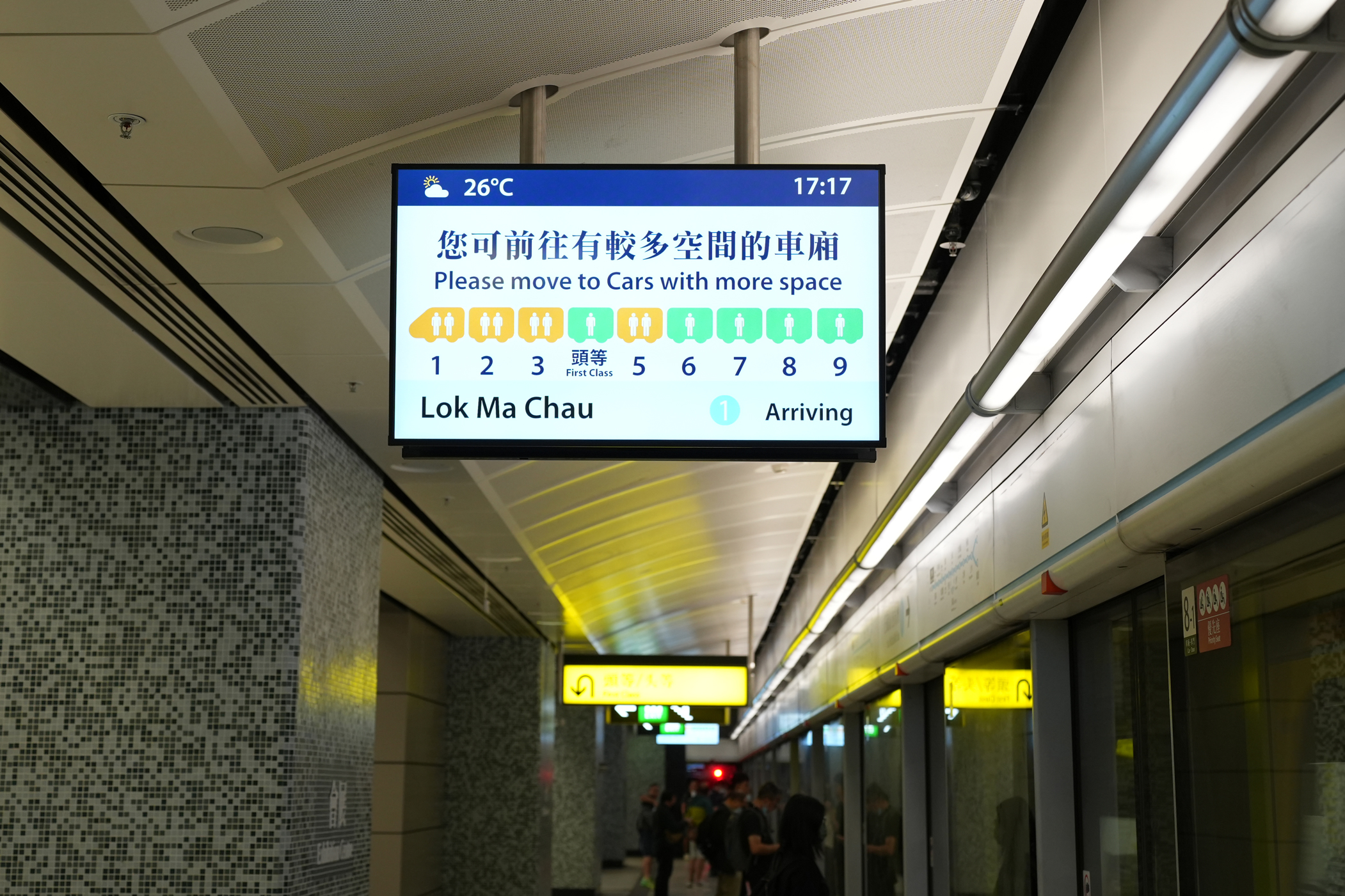 The system visualizes the crowdedness of all cars of the arriving train by detecting the weight of the train cars using smart sensors. Passengers are suggested to board train cars with more capacity in order to achieve a better riding experience.